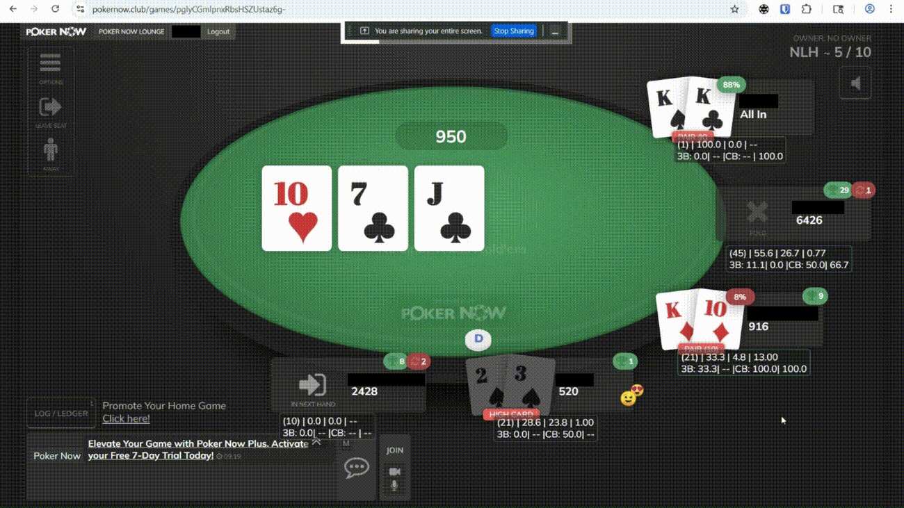 A heads up display, hand recorder, and note taker for pokernow.club. To help you calculate statistics and win more hands.
